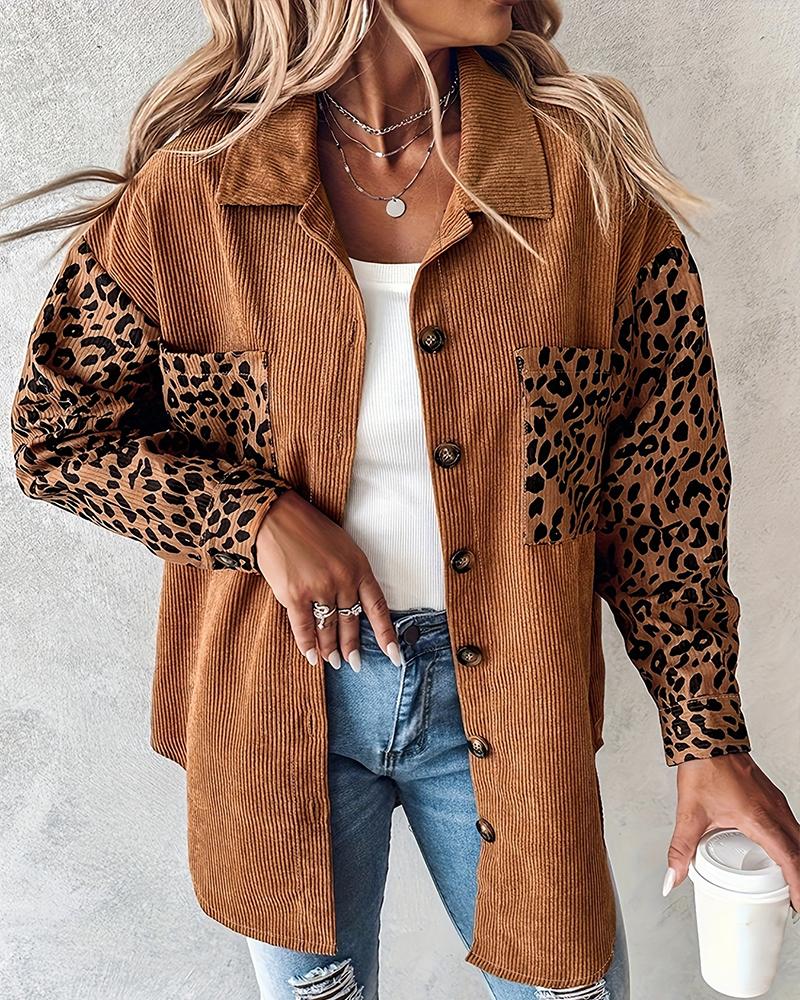 Leopard Print Pocket Design Corduroy Shacket