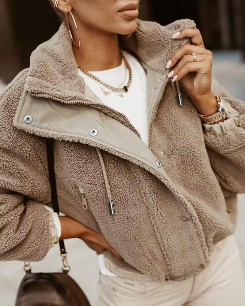 Style:Casual Type:Teddy Material:Polyester Neckline:Turn-down Collar Sleeve Style:Long Sleeve Length:Regular Pattern Type:Plain Decoration:Button,Zipper Fit Type:Regular Occasion:Daily Package Include:1*Coat
