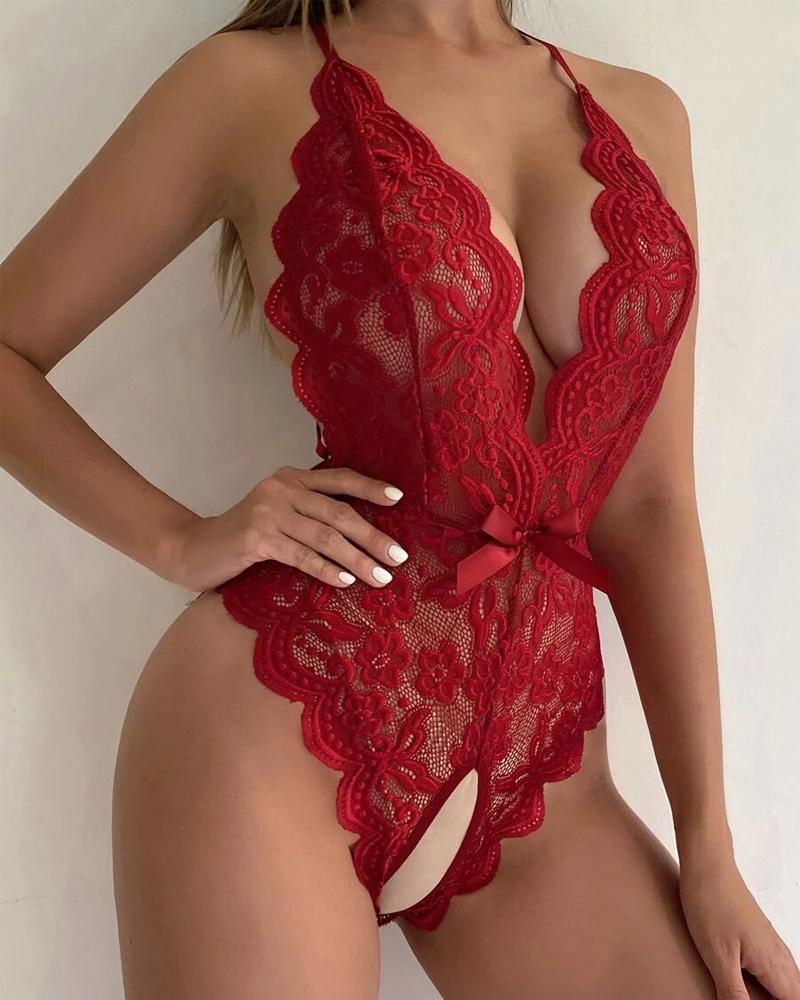 Spaghetti Strap Backless Crotchless Lace Teddy