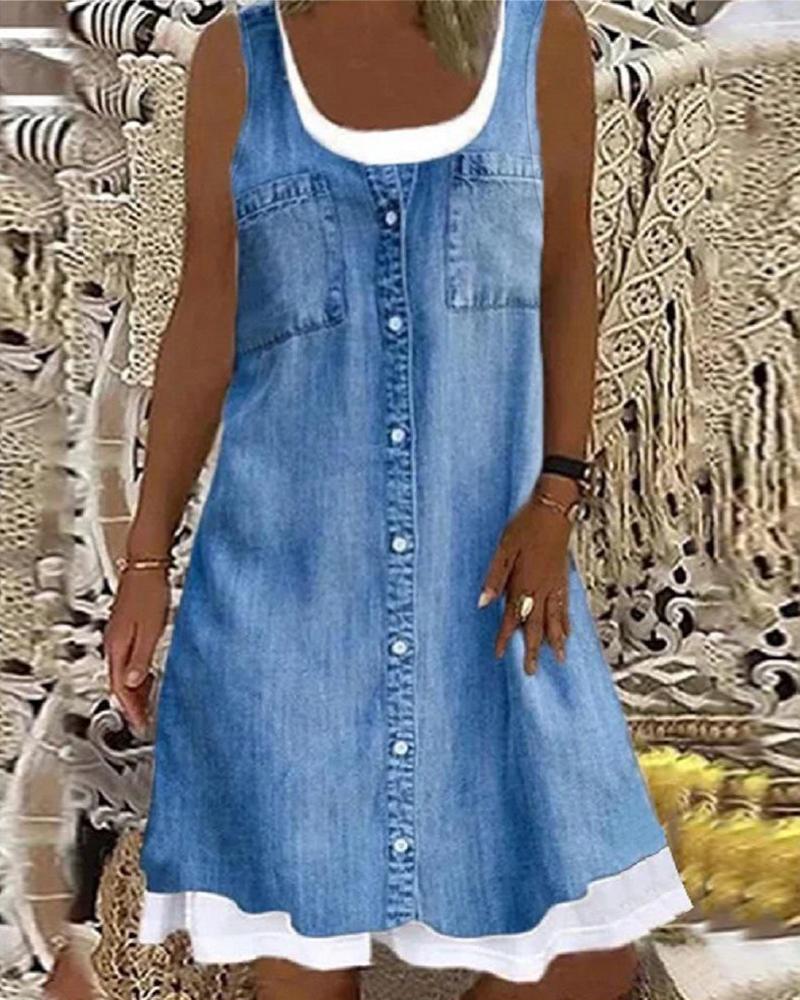 Style:Casual Type:A Line Material:Polyester Neckline:Round Neck Sleeve Style:Sleeveless Length:Mini Pattern Type:All Over Print Decoration:Button Fit Type:Regular Occasion:Daily Package Include:1* Dress Fabric Elasticity:Slight Stretch Sheer:No Care Instructions:Machine wash or professional dry clean