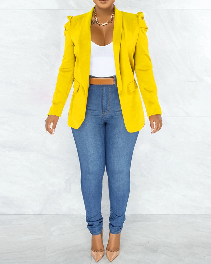 Style:Chic Type:Blazer Material:Polyester Neckline:Shawl Collar Sleeve Style:Long Sleeve Length:Regular Pattern Type:Plain Decoration:Pocket Fit Type:Regular Occasion:Daily Package Include:1 *Coat Fabric Elasticity:Non-Stretch Sleeve Type:Puff Sleeve Sheer:No Care Instructions:Machine wash or professional dry clean