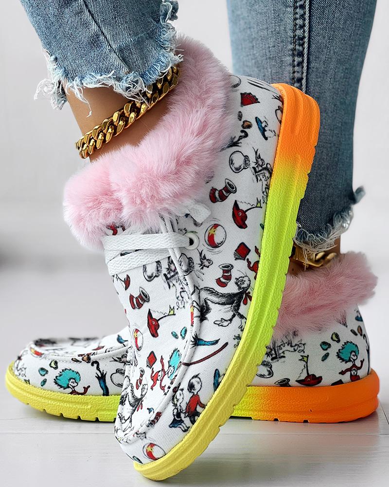 Christmas Cartoon Character Graphic Print Fuzzy Detail Lined Ankle Boots