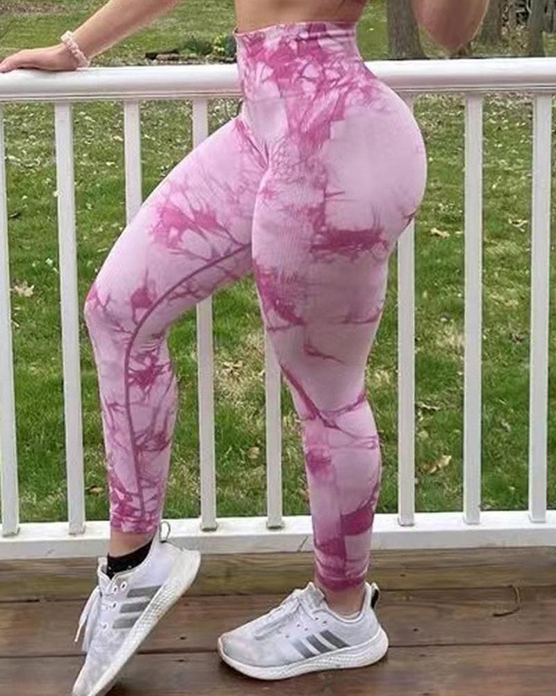 Tie Dye Print High Wasit Active Pants Sports Yoga Leggings