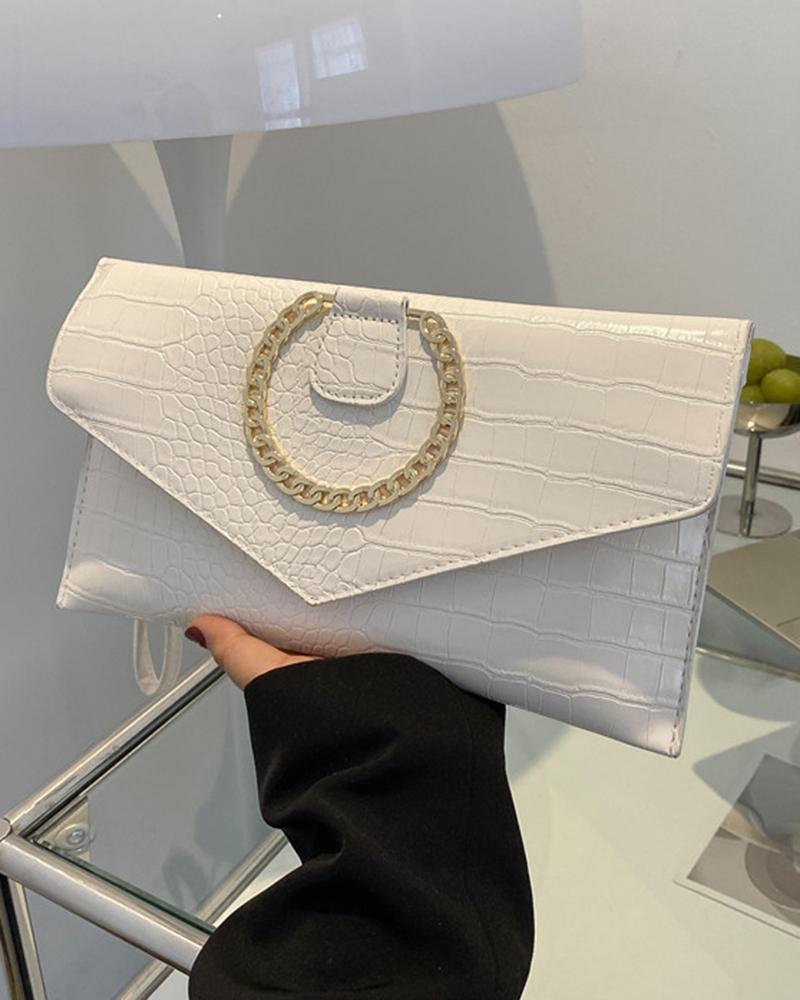 Crocodile Chain Decor Magnetic Flap Clutch Envelop Bag