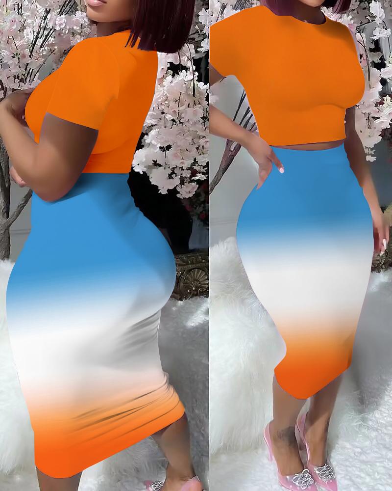Contrast Paneled Crop T-shirt & High Waist Pants Set