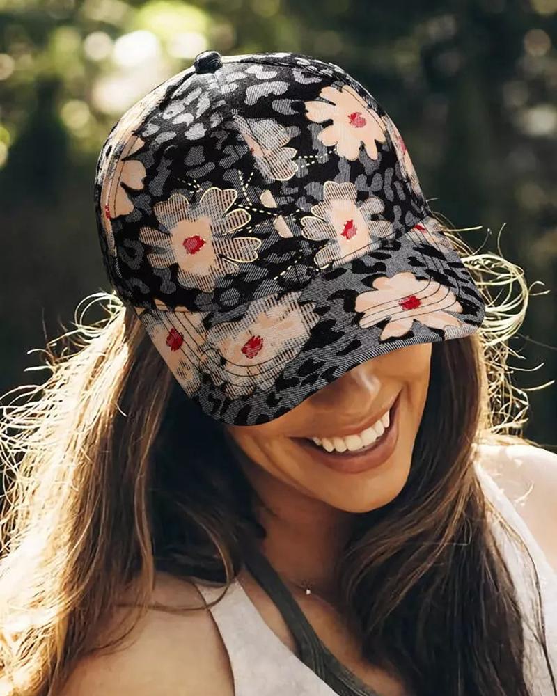 Floral Leopard Print Baseball Cap