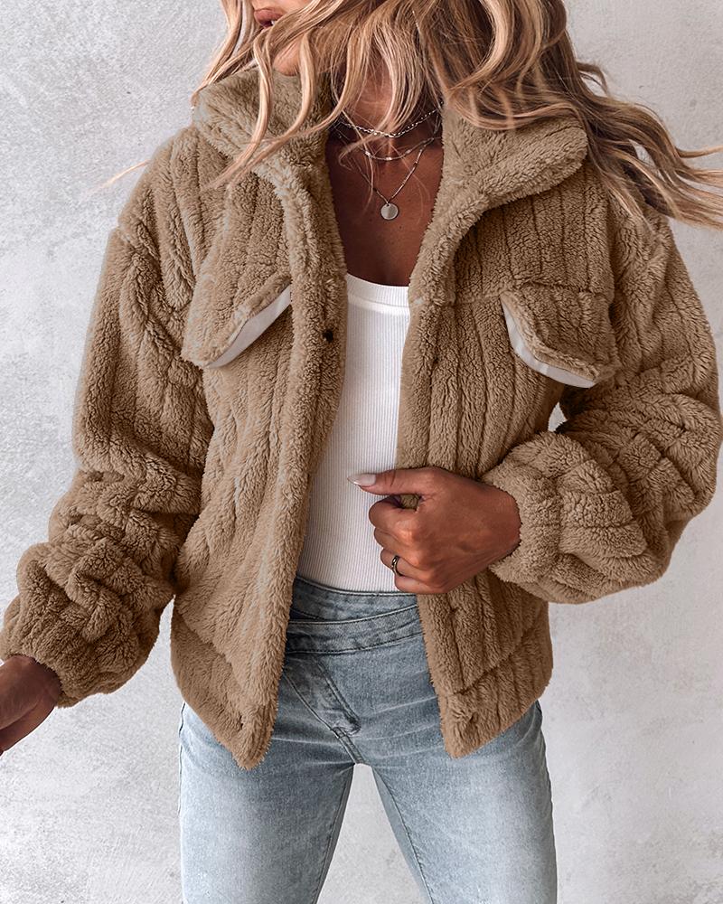 Style:Chic Type:Jacket,Teddy Material:Polyester Neckline:Turn-down Collar Sleeve Style:Long Sleeve Length:Regular Pattern Type:Plain Decoration:Button Fit Type:Regular Occasion:Daily Package Include:1*Jacket Fabric Elasticity:Non-Stretch Sheer:No Care Instructions:Machine wash, do not dry clean