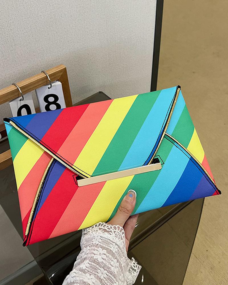 Rainbow Stripe Magnetic Clutch Envelope Bag