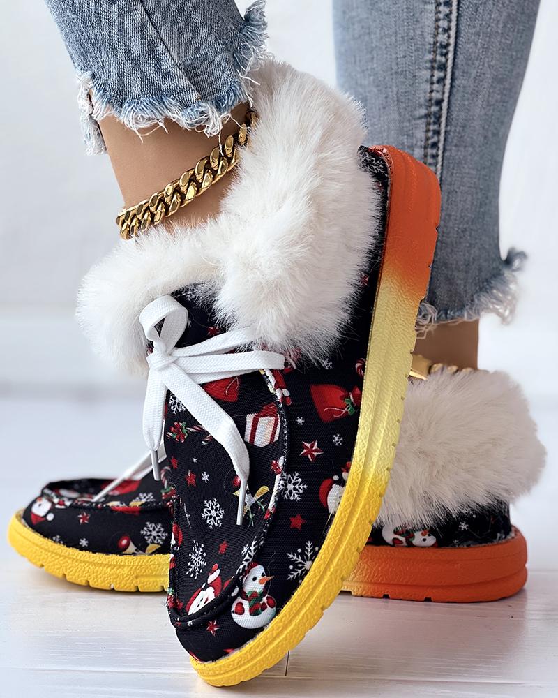 Christmas Snowman Gift Graphic Print Fuzzy Ankle Boots