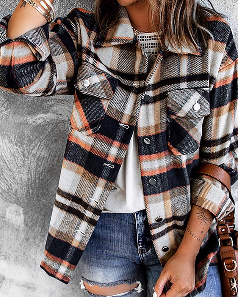 Plaid Print Pocket Button Design Shacket