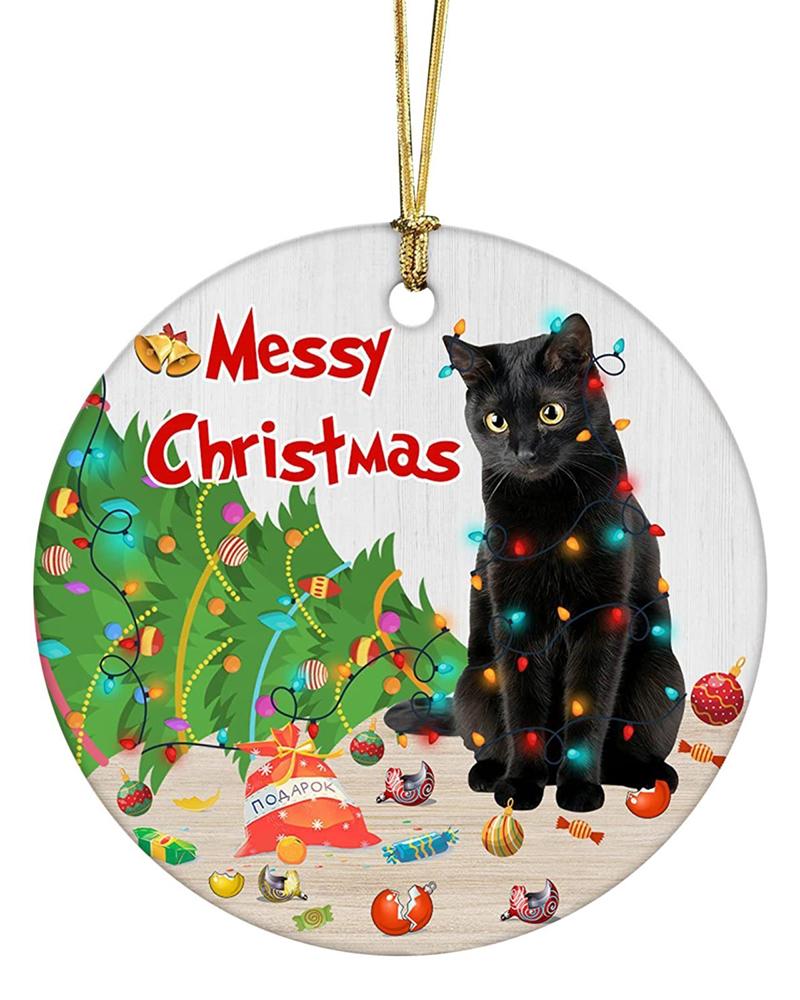 1pc Black Cat Graphic Acrylic Xmas Ornament Christmas Tree Hanging Decoration
