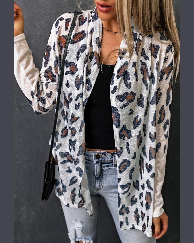 Leopard Print Open Front Coat