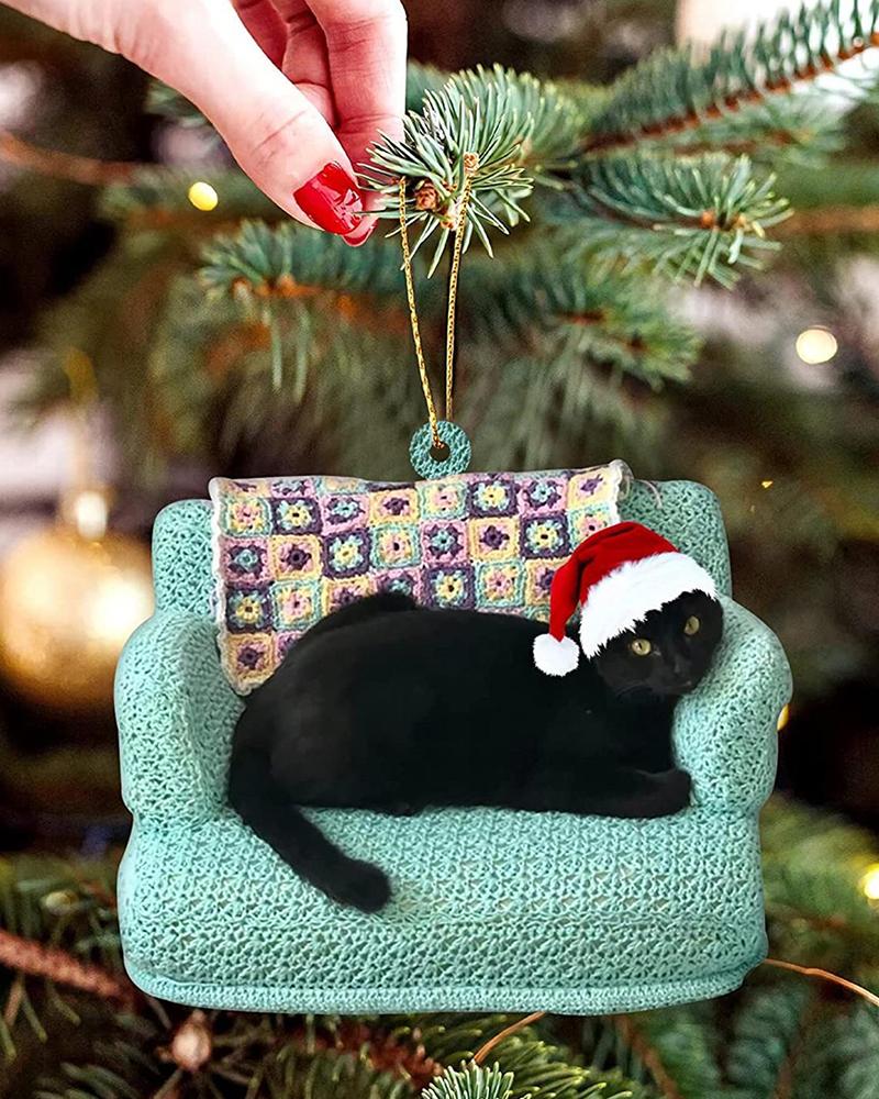 1pc Black Cat Graphic Acrylic Xmas Ornament Christmas Tree Hanging Decoration