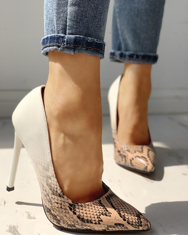 Pointed Toe Snakeskin Colorblock Insert Thin Heels