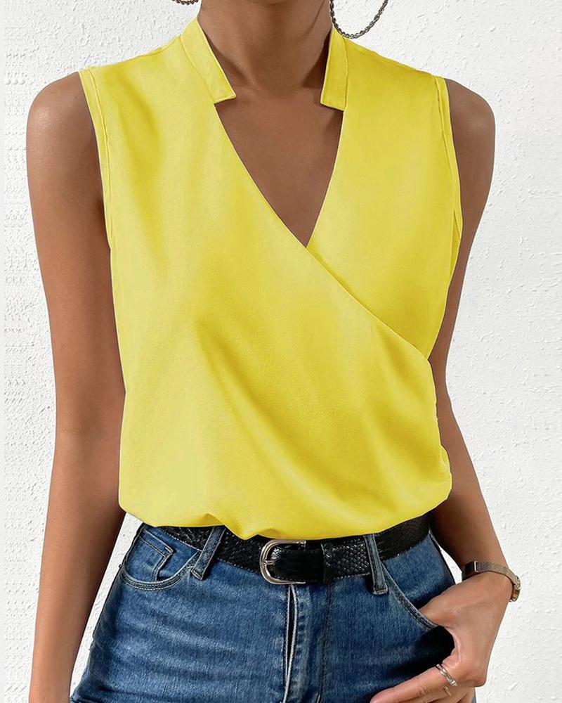 Style:Casual Type:Blouses Material:100%Polyester Neckline:Notch Neck Sleeve Style:Sleeveless Length:Regular Pattern Type:Plain Decoration:Others Fit Type:Regular Occasion:Daily Package Include:1* Blouse Fabric Elasticity:Non-Stretch Sheer:No Care Instructions:Machine wash or professional dry clean