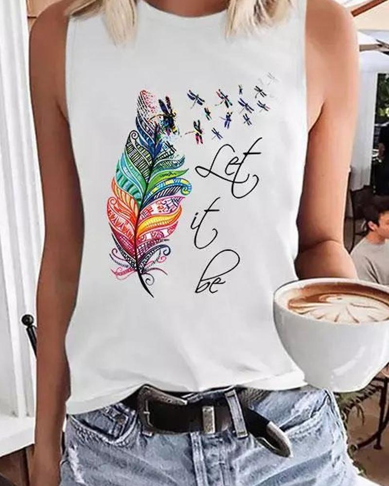 Let It Be Feather Dragonfly Print Casual Tank Top