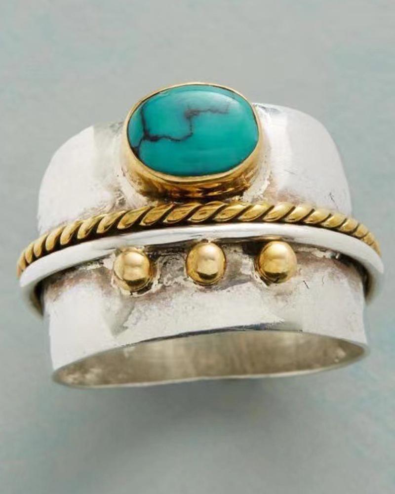 1pc Women's Jewelry Retro Ethnic Metal Turquoise Beaded Ring