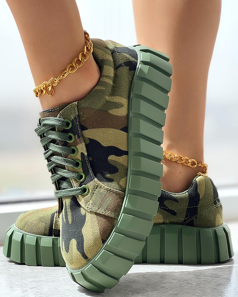 Camouflage Print Platform Lace-up Canvas Sneakers