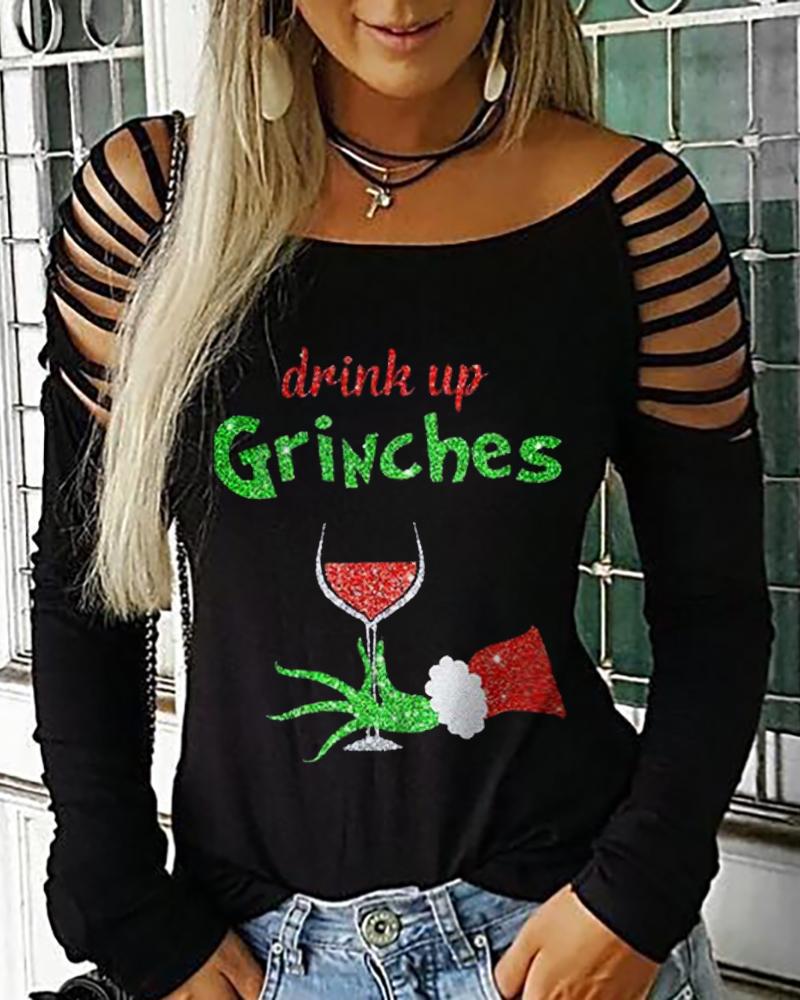 Style:Casual Type:Tee Material:Polyester Neckline:Cold Shoulder Sleeve Style:Long Sleeve Length:Regular Pattern Type:Christmas,Graphic Decoration:Cutout Fit Type:Regular Occasion:Christmas Package Include:1*Top