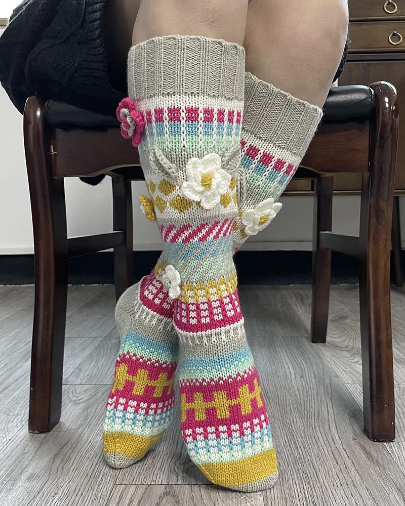 Style:Chic Type:Socks Material:100%Acrylic Pattern Type:Floral,Geometric Occasion:Daily Package Include:1Pair Socks