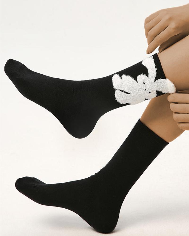 5Pairs/Set Rabbit Plaid Cartoon Thermal Crew Socks