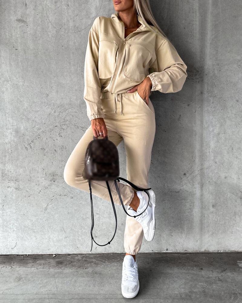 Zipper Pocket Design Top & Drawstring Pants Set