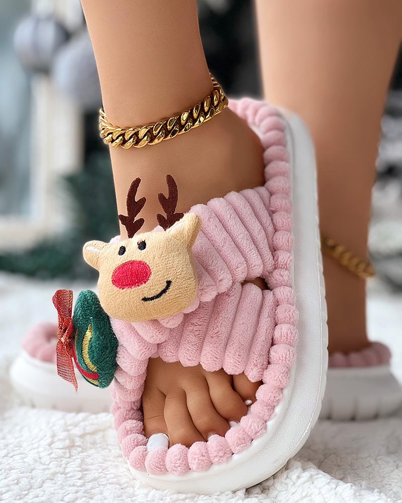 Style:Chic Type:Slippers Pattern Type:Christmas Occasion:Christmas Toe:Peep Toe Heel Height:Flat Package Include:1*Slippers