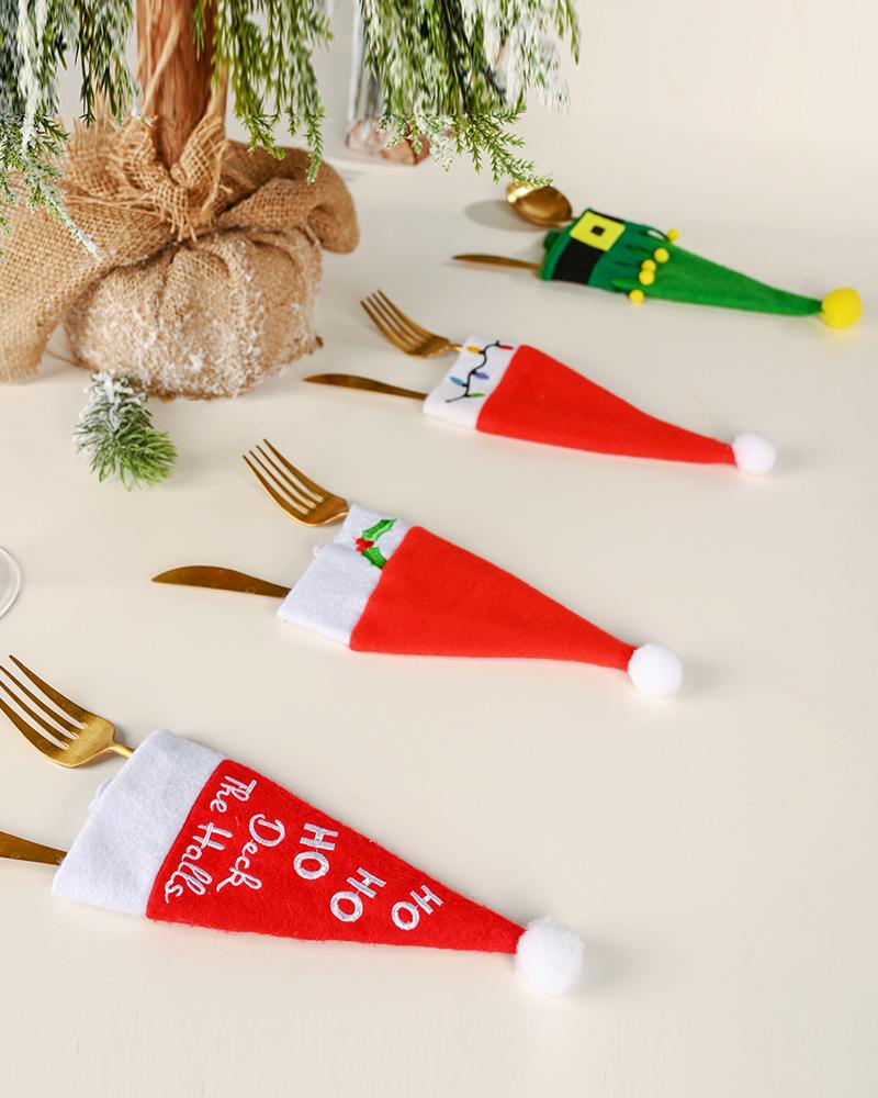 1pc Christmas Santa Hat Silverware Holder Tableware Cutlery Fork Spoon Knives Storage Bag Dinner Table Decoration Party Supplies