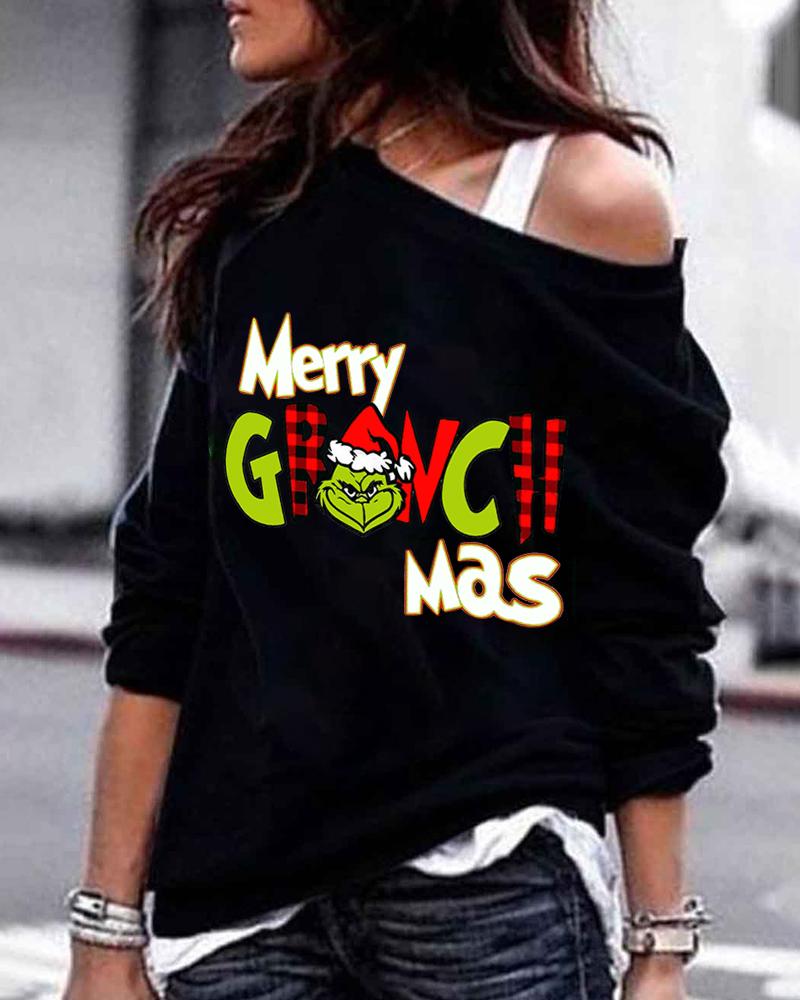 Merry Christmas Graphic Print Long Sleeve Sweatshirt