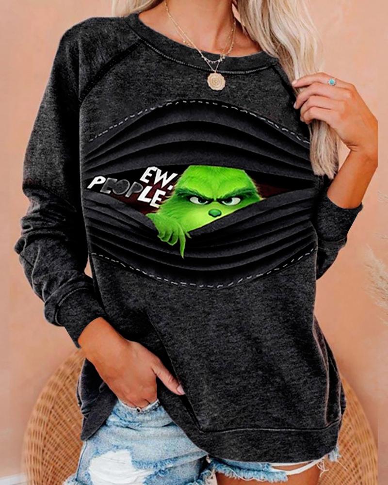 Style:Casual Type:Sweatshirt Material:Polyester Neckline:Round Neck Sleeve Style:Long Sleeve Length:Regular Pattern Type:Cartoon,Christmas Fit Type:Regular Occasion:Christmas Package Include:1*Sweatshirt