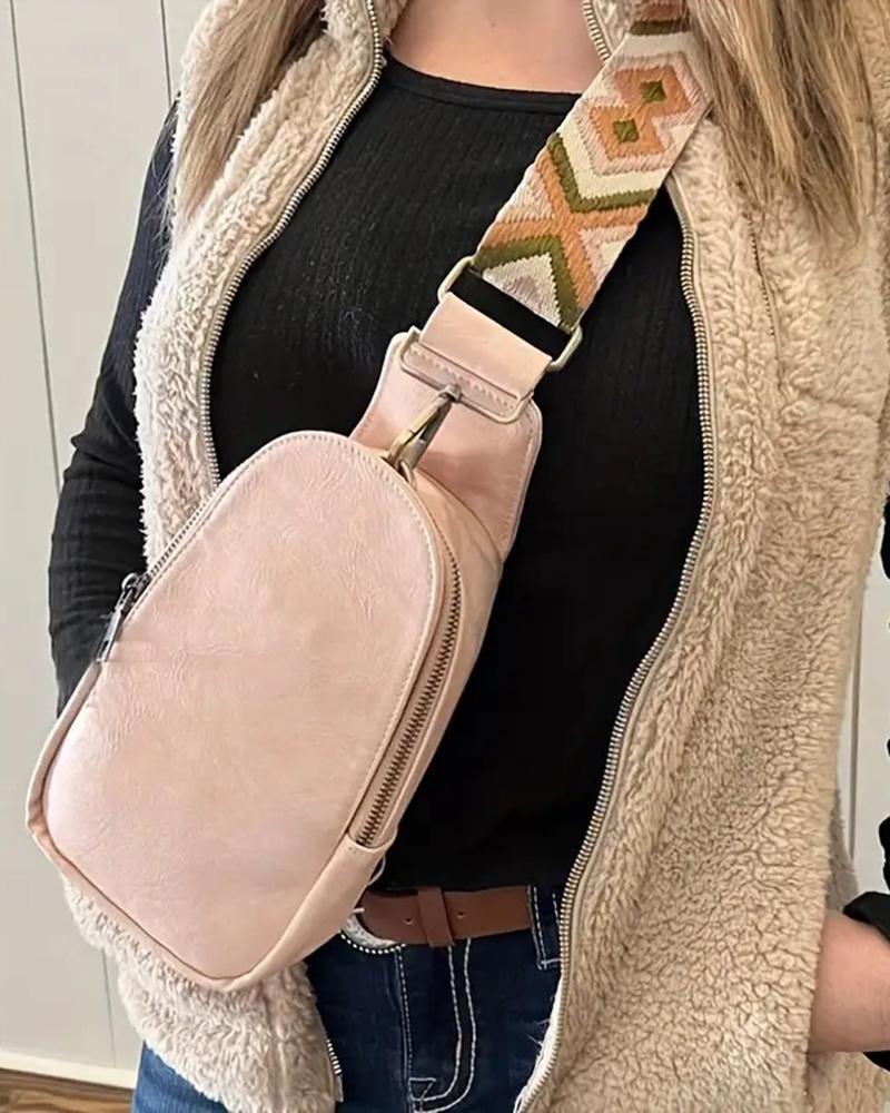 Aztec Geometric Strap Crossbody Bag Zipper Design Fanny Pack