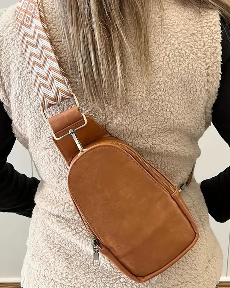 Aztec Geometric Strap Crossbody Bag Zipper Design Fanny Pack