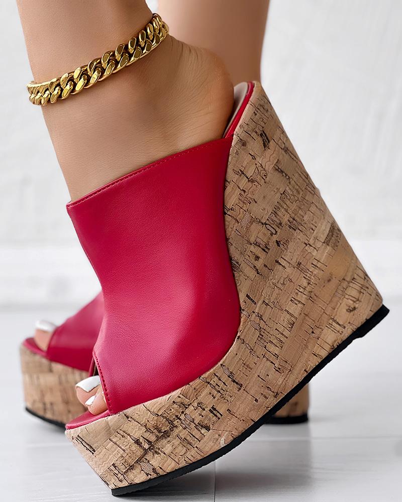 Style:Chic Type:Wedge Shoes Material:PU Pattern Type:Plain Decoration:Peep Toe Occasion:Daily Toe:Peep Toe,Round Toe Heel Height:Ultra High Heel Package Include:1*Sandals