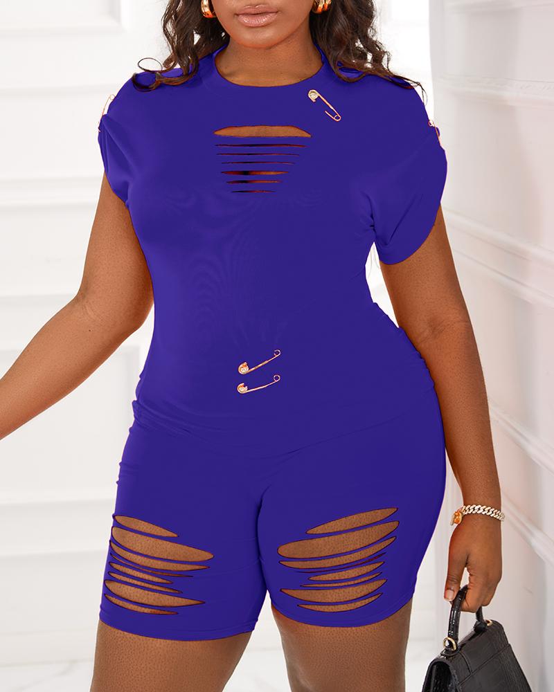 Style:Casual Type:Shorts Set Material:97%Polyester,3%Spandex Neckline:O-neck Sleeve Style:Short Sleeve Length:Above Knee Pattern Type:Plain Decoration:Cutout Fit Type:Regular Occasion:Daily Package Include:1*Shorts Set (With Safety Pins) Fabric Elasticity:Medium Stretch Sheer:Yes Care Instructions:Machine wash or professional dry clean