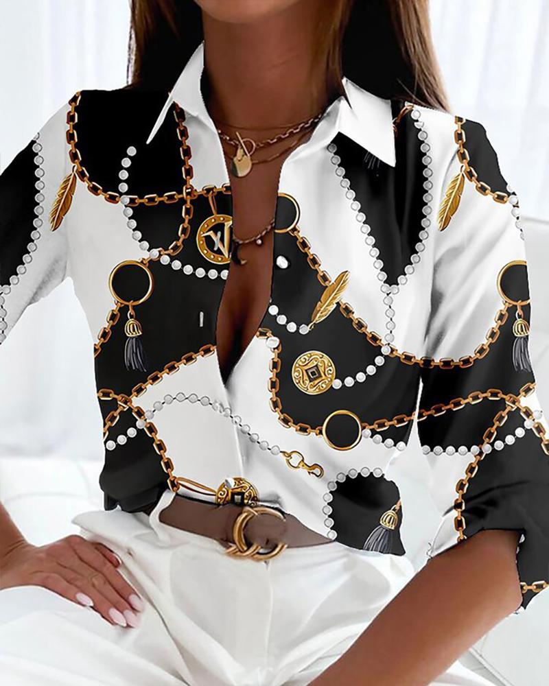 Style:Elegant Type:Shirt Material:97%Polyester,3%Elastane Neckline:Turn-down Collar Sleeve Style:Long Sleeve Length:Regular Pattern Type:Chain,Colorblock Decoration:Button Fit Type:Regular Occasion:Daily,Work Package Include:1*Shirt Fabric Elasticity:Slight Stretch Sleeve Type:Roll Up Sleeve Sheer:No Care Instructions:Machine wash or professional dry clean
