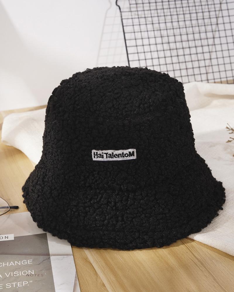 Letter Embroidery Fluffy Winter Thermal Bucket Hat