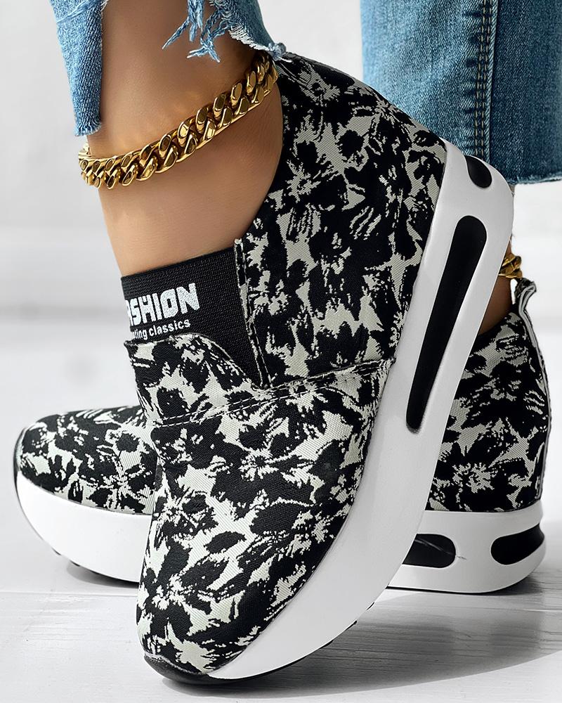 Floral Print Platform Slip-On Muffin Sneakers