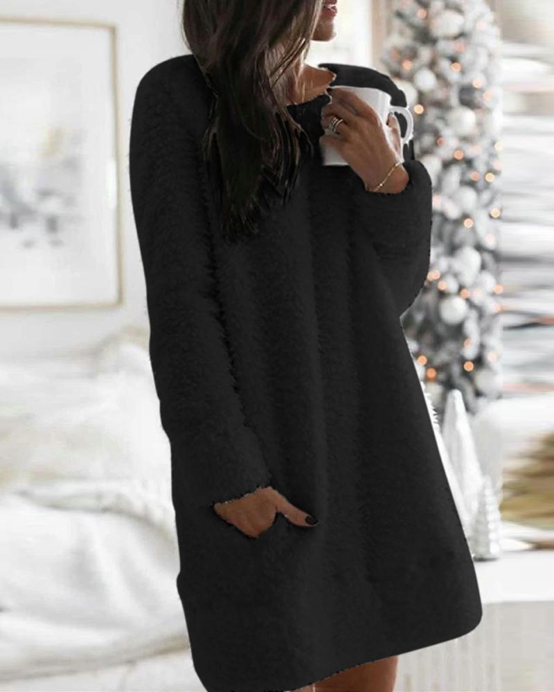 There'll be no turning back in our Dress ! This style is everything and more featuring pockets detail, fluffy design and solid color. Style with your favourite shoes so that all eyes are on you.