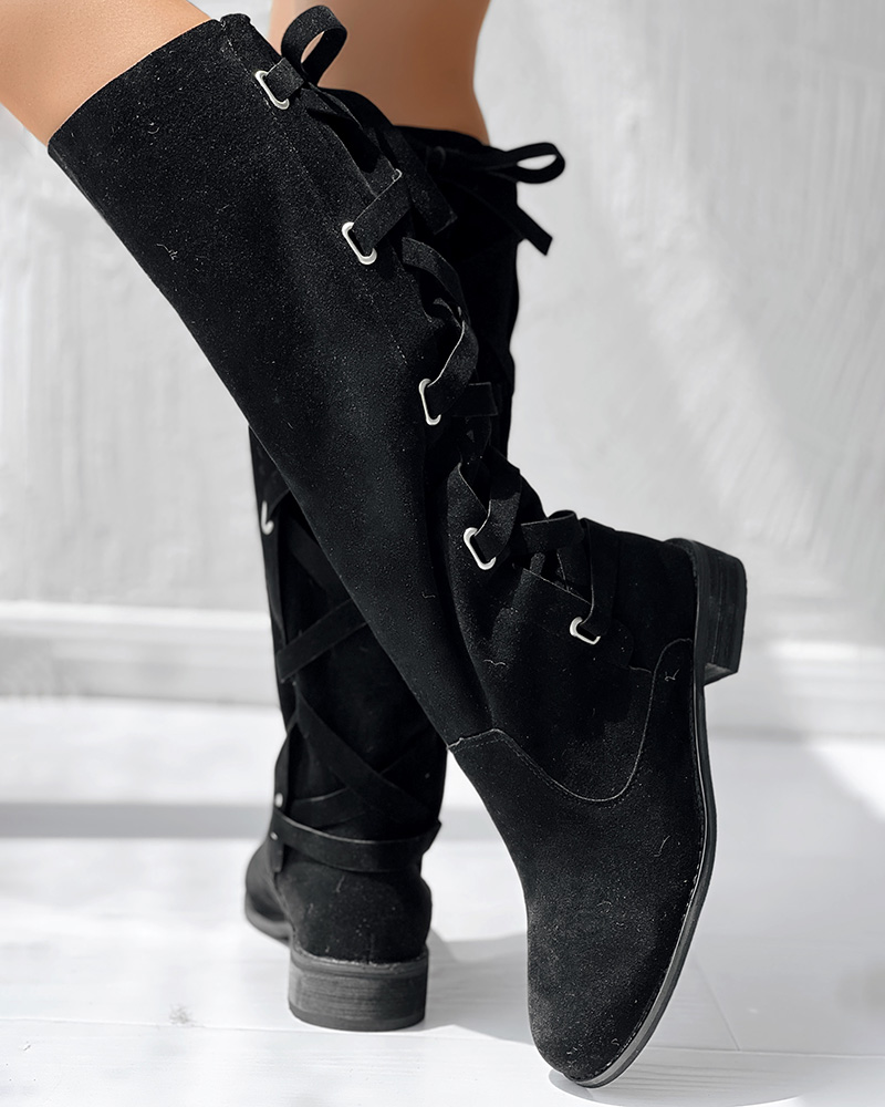 Eyelet Lace-up Over The Knee Boots