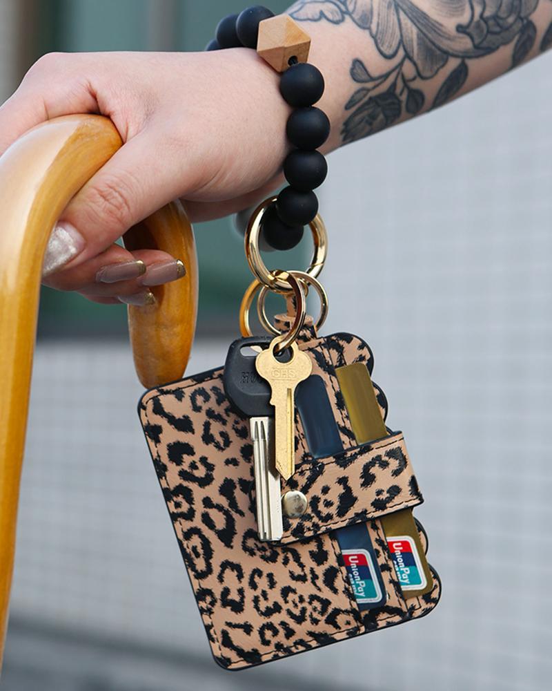 1pc Marble Leopard Print Credit Card Holder Coin Purse Bangle Key Chian