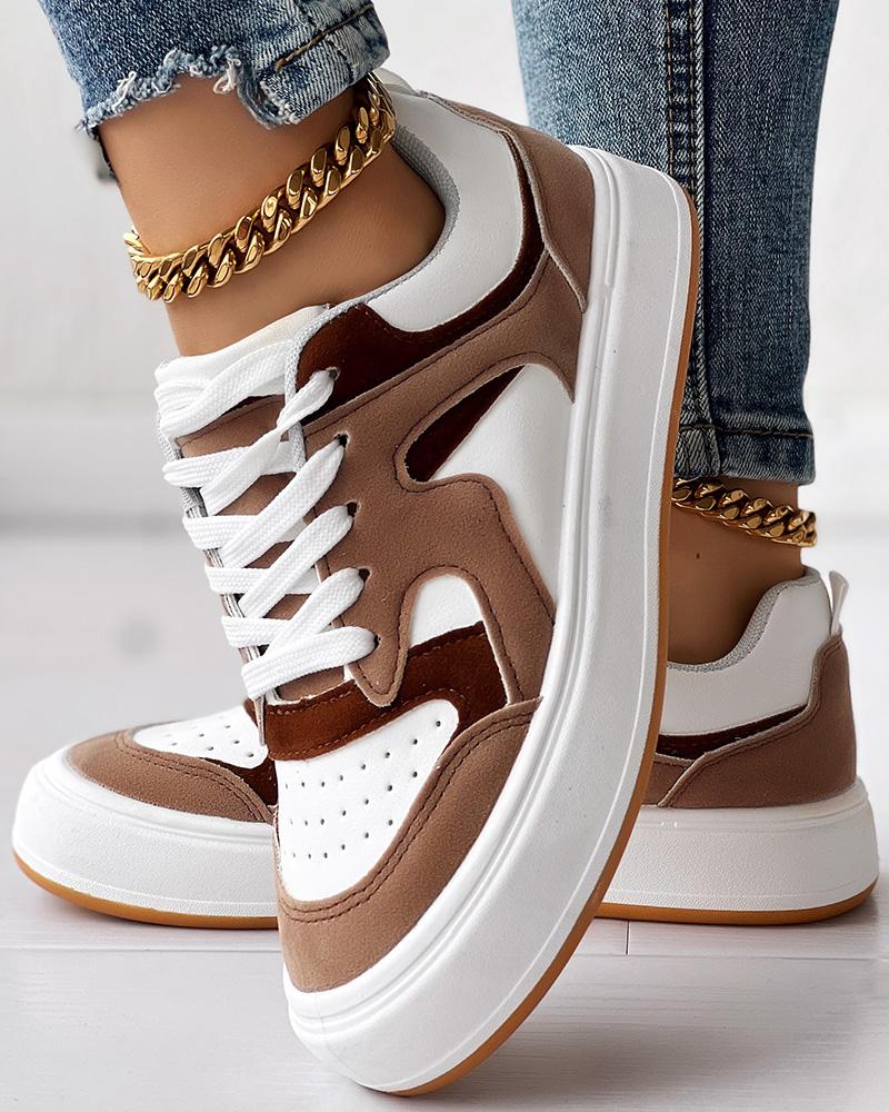 Style:Chic Type:Sneakers Pattern Type:Colorblock,Plain Occasion:Daily Toe:Round Toe Heel Height:Flat Package Include:1*Sneakers