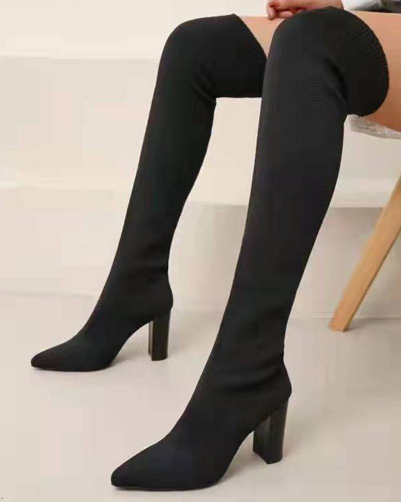 Style:Chic Type:Boots Material:Rib-Knit Pattern Type:Plain Occasion:Daily Toe:Point Toe Heel Height:High Heel Package Include:1*Boots