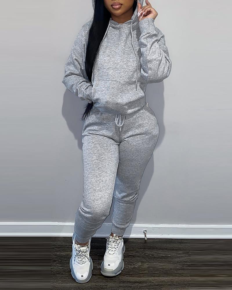 Style:Chic Type:Sweatshirt Sets,Sweatpants Sets Material:Polyester Neckline:Hooded Sleeve Style:Long Sleeve Length:Long Pattern Type:Plain Decoration:Pocket Fit Type:Regular Occasion:Daily Package Include:Pants Sets