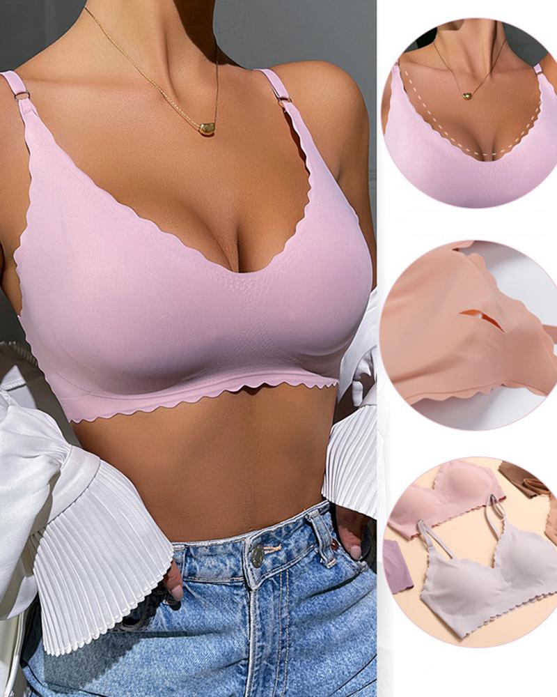 Scallop Trim Wireless Bra Comfortable Seamless Intimates Bralette