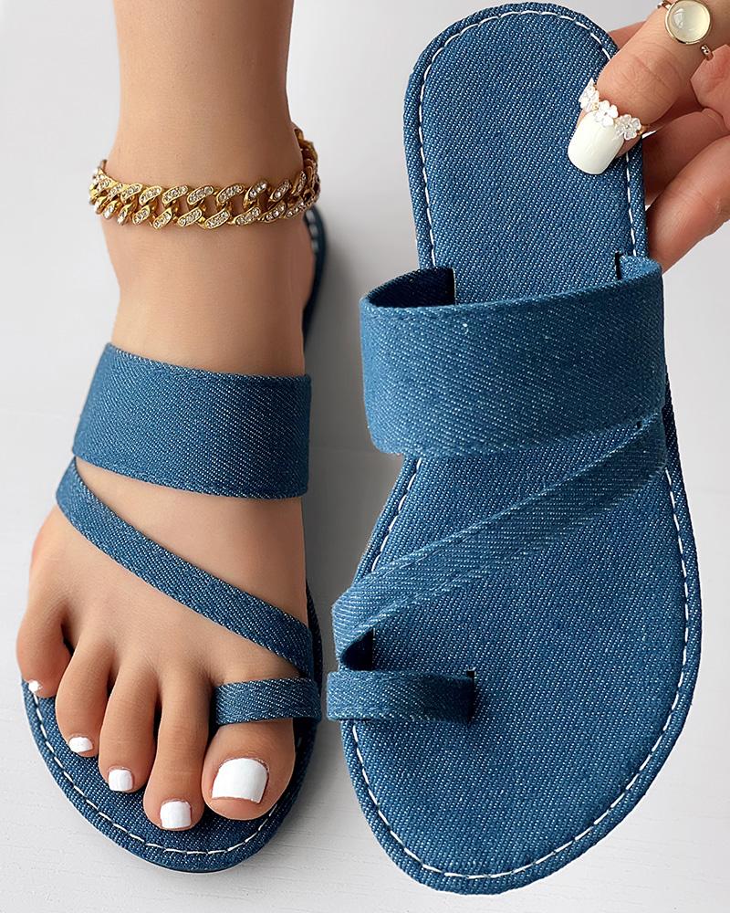 Denim Look Print Toe Ring Summer Beach Flip Flops