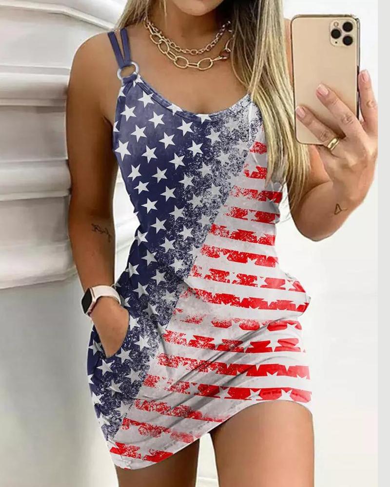 Independence Day Flag Print O-Ring Casual Dress