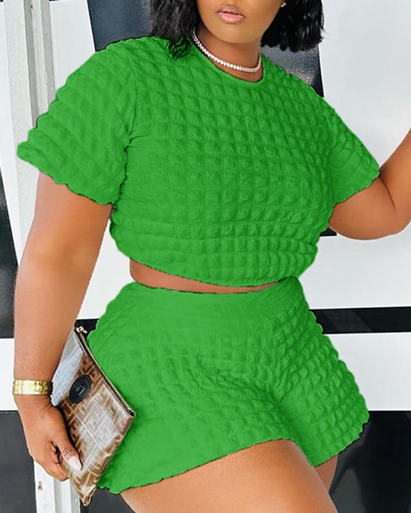 Textured Round Neck Crop Top & High Waist Shorts Set