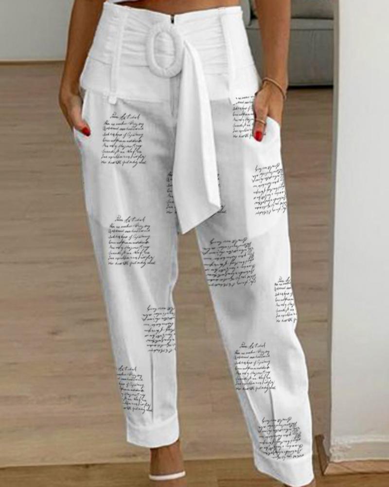 Style:Casual Type:High Waist Material:100%Polyester Length:Long Pattern Type:Letter Decoration:Pocket Fit Type:Regular With Belt:Yes Occasion:Daily Package Include:1*Pants(With Belt) Fabric Elasticity:Slight Stretch Sheer:No Care Instructions:Machine wash or professional dry clean Waist Line:High Waist