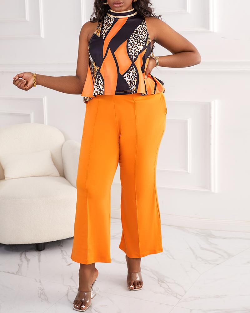 Style:Elegant Type:Pants Sets Material:Polyester Neckline:O-neck Sleeve Style:Sleeveless Length:Long Pattern Type:Baroque,Leopard,Random Print Decoration:Others Fit Type:Regular Occasion:Daily,Work Package Include:1*Pants Set Fabric Elasticity:Non-Stretch Sheer:No Care Instructions:Machine wash or professional dry clean