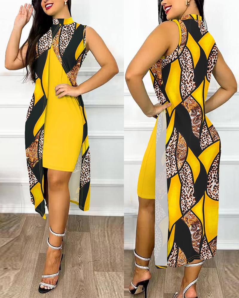 Style:Casual Type:Asymmetrical Material:Polyester Neckline:Mock Neck Sleeve Style:Sleeveless Length:Asymmetrical Pattern Type:Baroque,Colorblock,Leopard,Random Print Decoration:Slit Fit Type:Regular Occasion:Daily Package Include:1* Dress Fabric Elasticity:Slight Stretch Sheer:No Care Instructions:Machine wash or professional dry clean